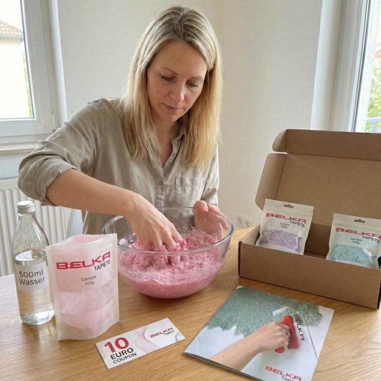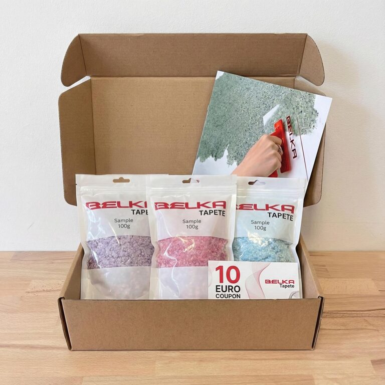 Unsere selbstklebende Belka Tapete, die einfach anzuwenden ist, ermöglicht eine schnelle und unkomplizierte Anwendung – einfach mit Wasser anfeuchten, mischen und auftragen für ein perfektes Finish.
